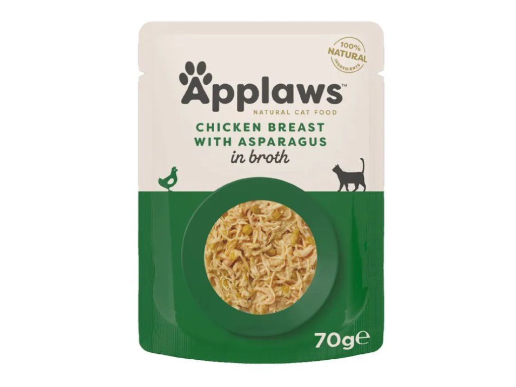 Applaws Cat Kuřecí prsa a chřest kapsička je přírodní doplňkové krmivo určené pro dospělé kočky všech plemen s normální aktivitou. Obsahuje 100 % přírodních ingrediencí: poctivou porci libového masa z kuřecích prsíček, cřest a kuřecí vývar. Maso pochází z chovů, ve kterých jsou kuřata chována ve volných výbězích a krmena přirozeně bez použití hormonů a antibiotik.