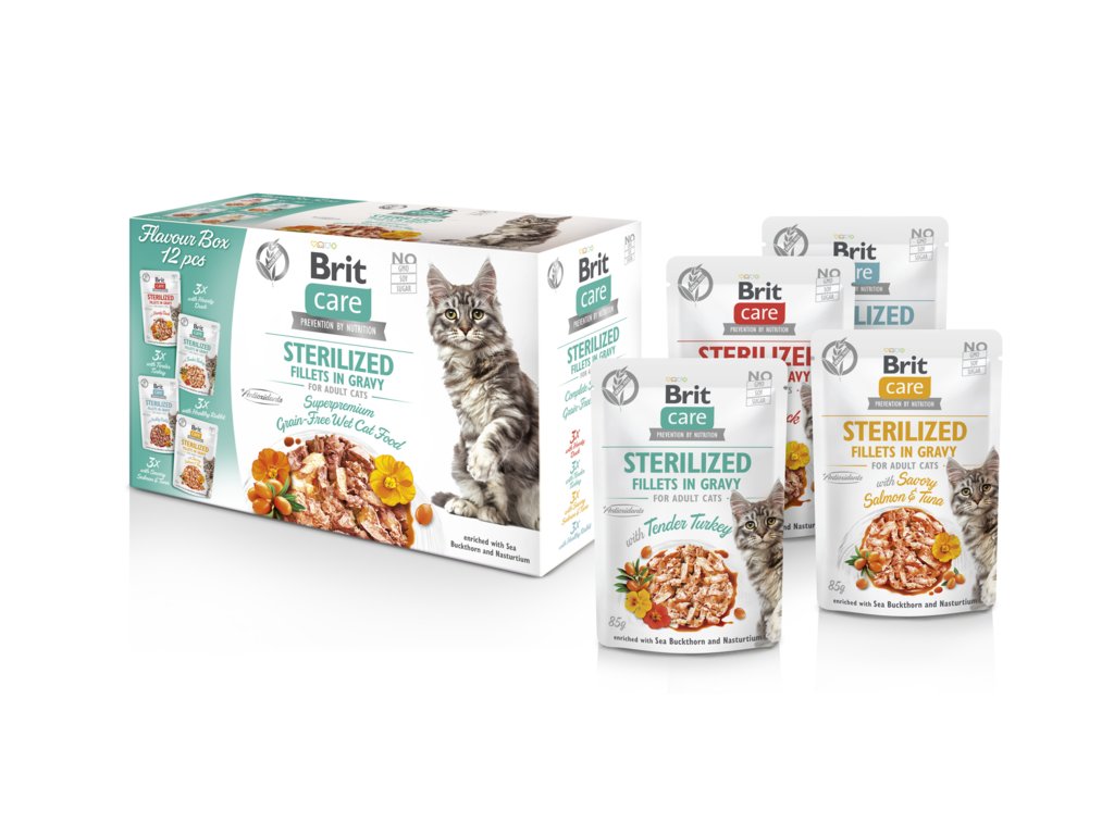 Brit Care Cat Sterilised filetky ve šťávě s krůtím.