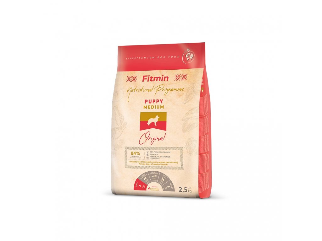 Dopřejte svému štěněti superprémiové krmivo pro psy, kterým krmí i Horská služba České republiky. Superprémiové krmivo s čerstvým drůbežím masem, rybím masem a rýží garantuje smysluplné složení, které organismus zvířete dokáže efektivně využít. Tyto granule pro psy jsou postaveny na receptuře s rýží a kukuřicí, tedy obilovinami, které neobsahují lepek a jsou hypoalergenní. I další suroviny jsou voleny velmi racionálně, a tak jsou granule pro psy obohaceny o prebiotika, která pozitivně ovlivňují střevní mikroflóru, heřmánek, který má dezinfekční účinky a napomáhá zmírnit nadýmání. Granule pro štěňata také obsahují omega 3 a 6 mastné kyseliny pro blahodárné účinky na srdeční a mozkovou činnost. Do každé Fitmin granule jsme přidali i nepatrné množství kvalitní jablečné vlákniny, aby byla střeva zvířete vždy v perfektní kondici. Samozřejmostí jsou pro Fitmin psí granule jsou lněné semínko a lososový olej pro kvalitní srst, kůži a imunitní systém psa.