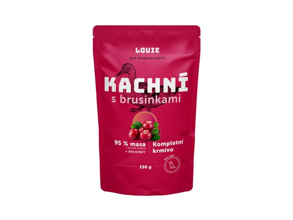 kachní maso, vývar, změkčené kachní kosti, brusinky, minerály a vitamíny.