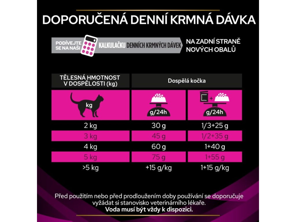 | Hmotnost kočky (kg) | Denní krmná dávka (g) |
