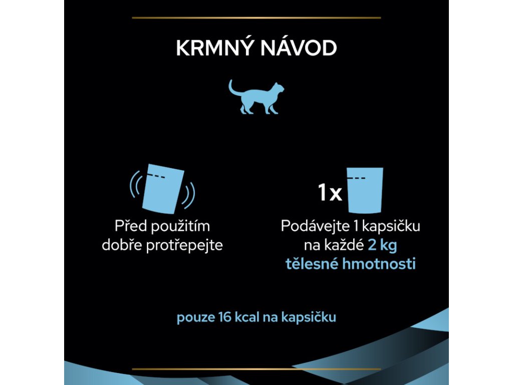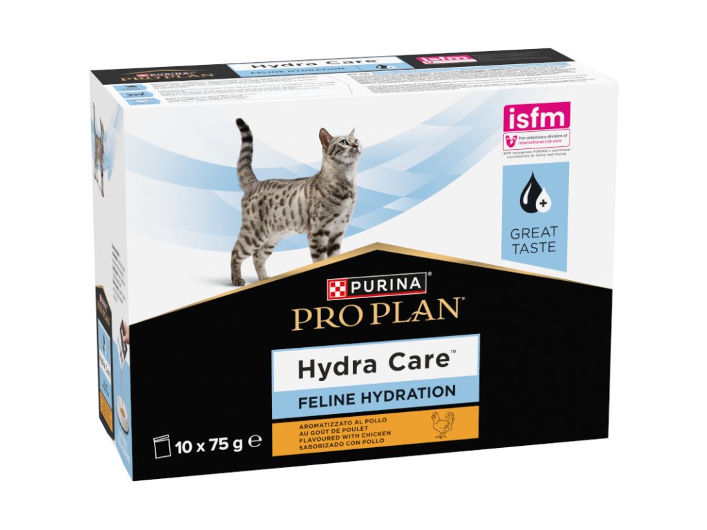 Hydratační doplňkové krmivo pro dospělé kočky. PURINA® PRO PLAN® HC Hydra Care™ - nový koncept v hydrataci koček. Převratný nutriční doplněk vytvořený za účelem podpory příjmu vody u koček, které při jeho konzumaci přijmou každý den průměrně o 28 % více vody v porovnání s pouhým pitím kohoutkové vody*. Výsledkem je vyšší ředění jejich moči. * V porovnání s kočkami, které přijímají ke granulovanému krmivu pouze vodu. Kočky by měly pro pozitivní účinky přijmout nejméně 25 ml/kg tělesné hmotnosti.